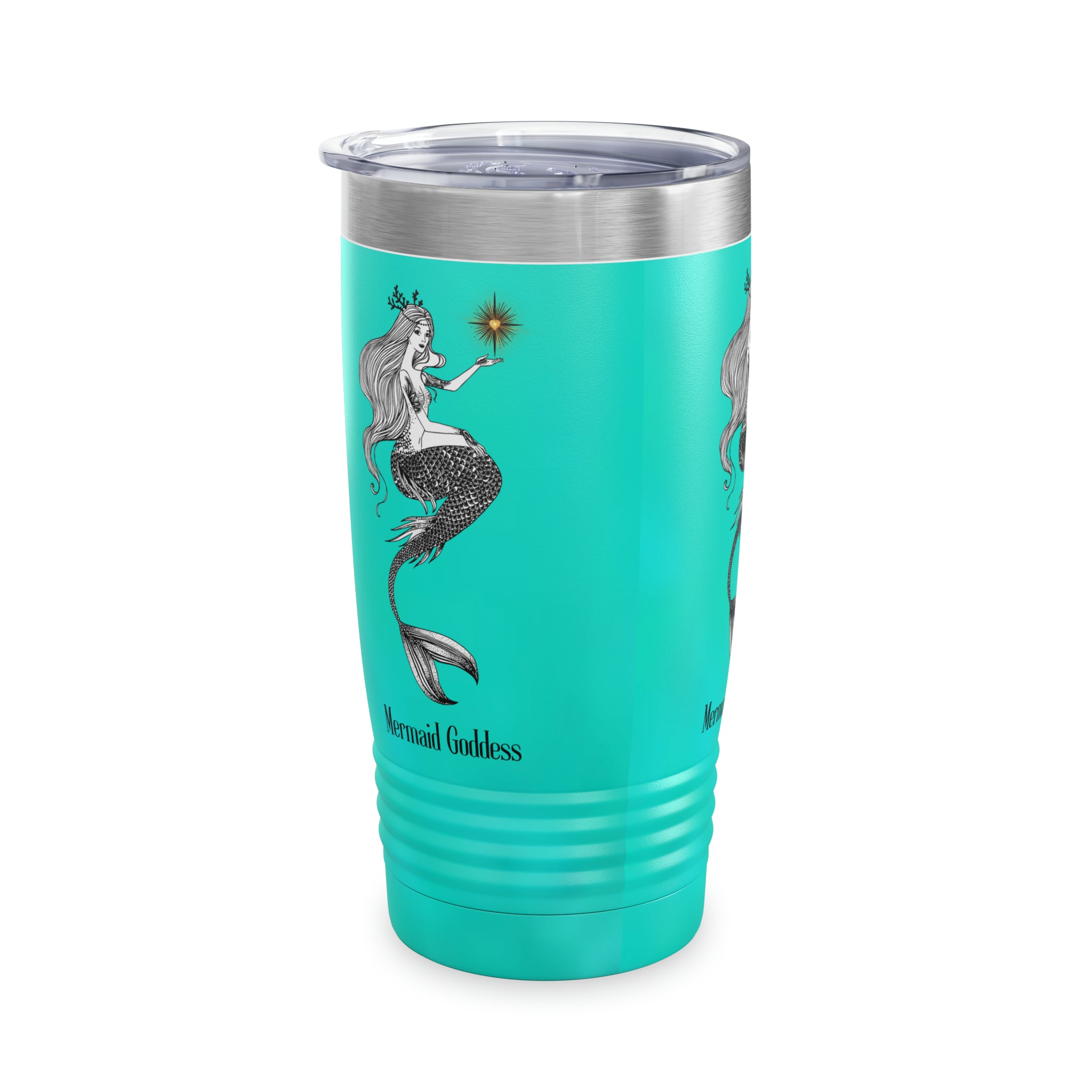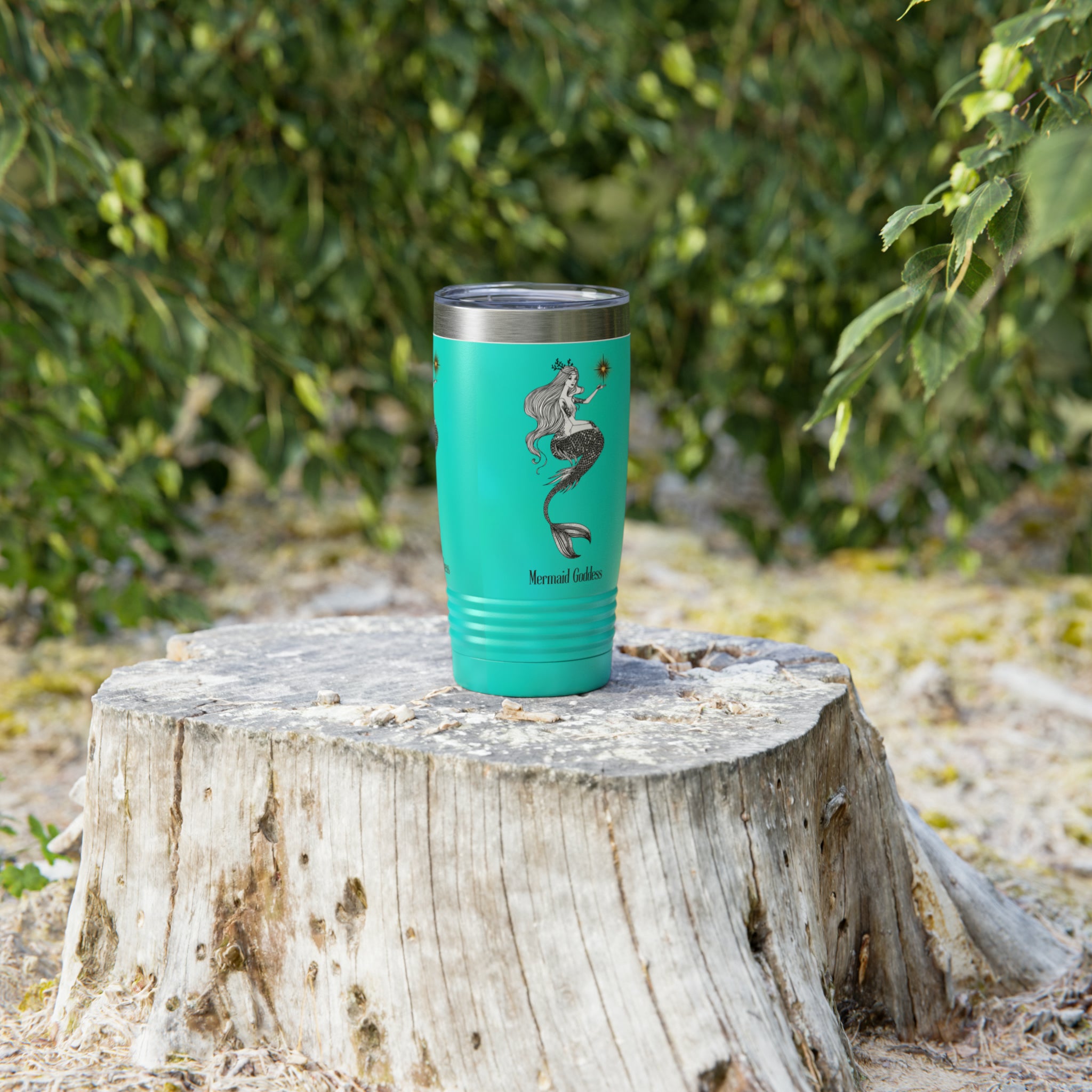 A Stunning Mermaid Goddess on this turquoise/ teal travel tumbler lets you carry ocean vibes and goddess confidence with you wherever you go. Have a dose of self love with your drink - and remember you're a Goddess!